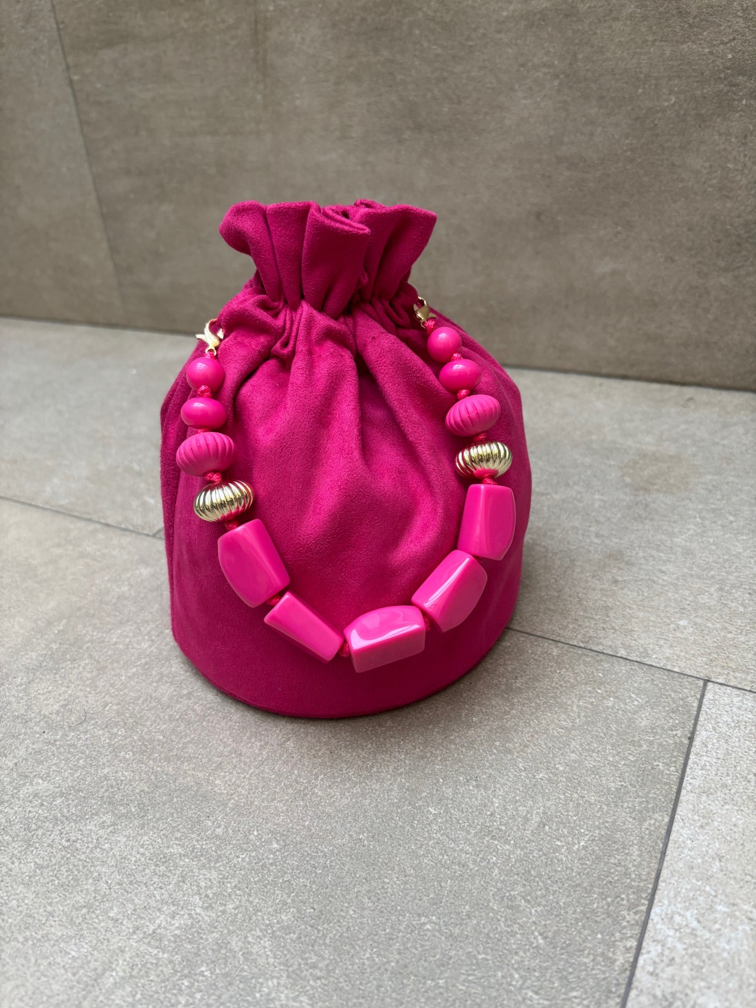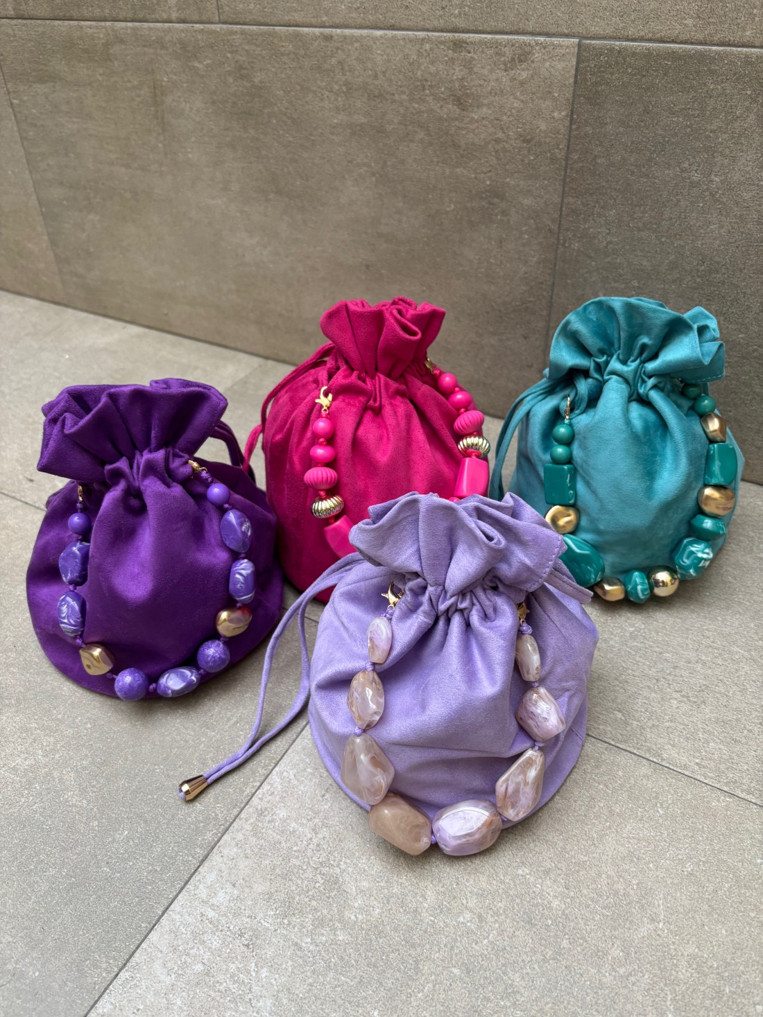 Available in four vibrant colors, the Bombonera Asa Abalorios collection adapts to any color palette. You can opt for the freshness of aqua green or the sweetness of lilac for daytime and spring events. If you are looking for a greater visual impact, deep purple brings timeless elegance, while fuchsia is the ideal choice for the more daring who want to follow the latest fashion trends. A versatile, chic and full of personality bag to make you the perfect guest.
