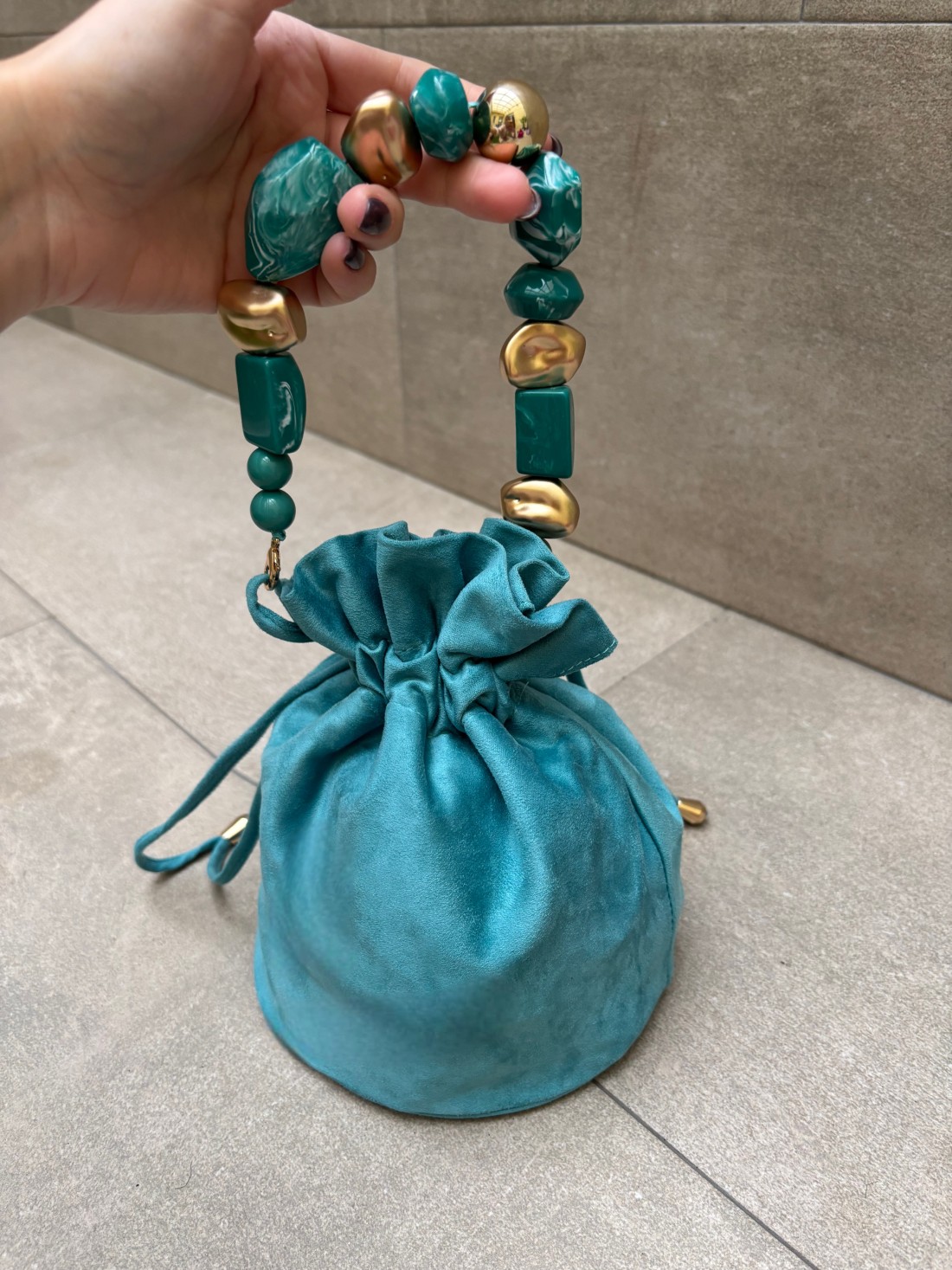 The true hallmark of this model is its spectacular beaded handle. Designed as a piece of handcrafted jewelry, the handle combines large beads in different textures and finishes that harmonize chromatically with the bag. These details, which include faceted beads and metallic accents, act as an eye-catching highlight, allowing you to wear the bag as if it were a piece of jewelry in your wardrobe.