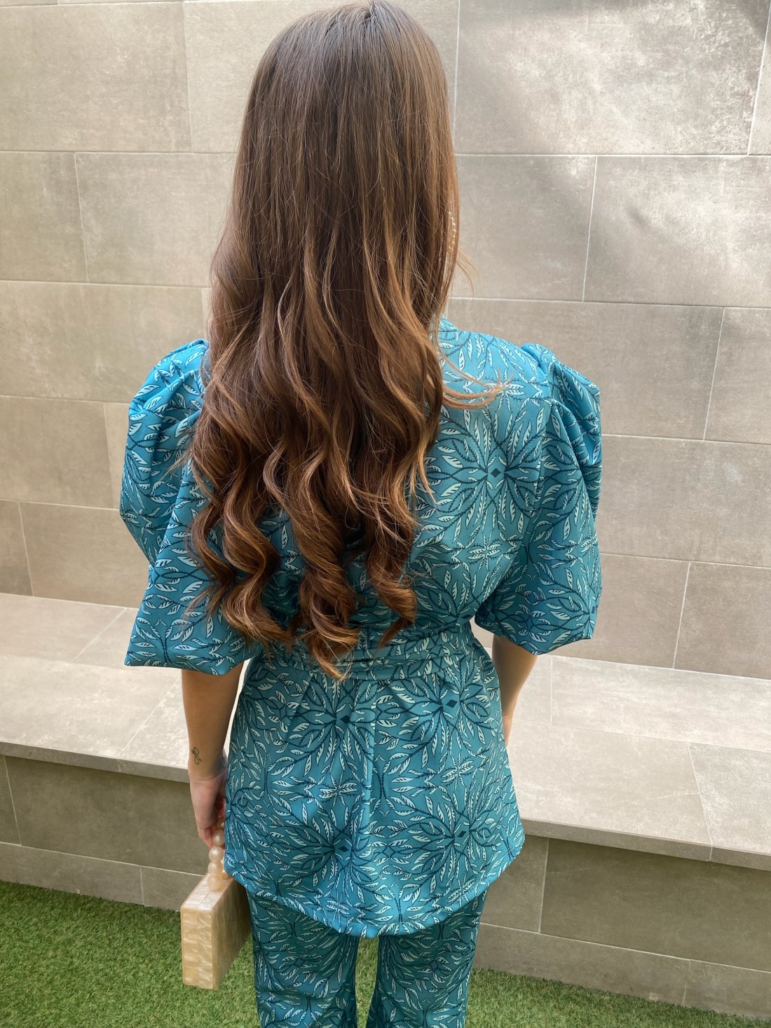 We cannot guarantee symmetry in the cut of printed garments, so there may be differences compared to the model in the photograph.