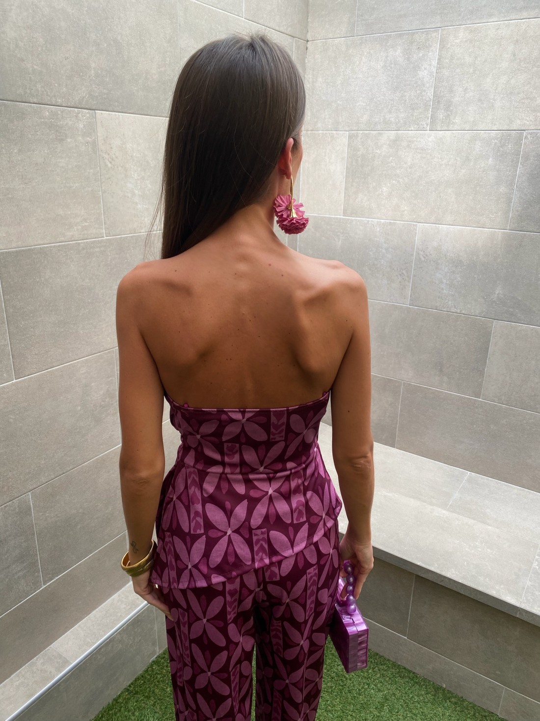 El Mono Zagreb Buganvilla es la pieza definitiva para quienes buscan un look de evento moderno, cómodo y lleno de personalidad. Este mono largo, confeccionado en un tejido con cuerpo y caída impecable, destaca por su vibrante estampado geométrico en tonos buganvilla y malva, una combinación cromática que es tendencia absoluta y que aporta una sofisticación contemporánea inmediata.