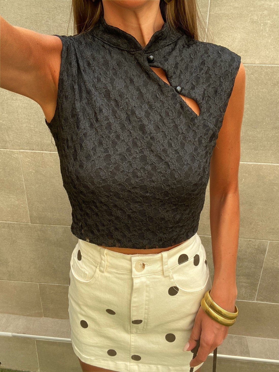 El Top Ying es la prenda ideal para quienes buscan elevar sus looks cotidianos con un toque de originalidad y frescura. Este top corto (crop top) destaca por su exquisito tejido de encaje floral, que aporta una textura rica y femenina sin perder ese aire relajado y actual. Disponible en negro y crema, es un básico especial que combina con absolutamente todo tu armario.