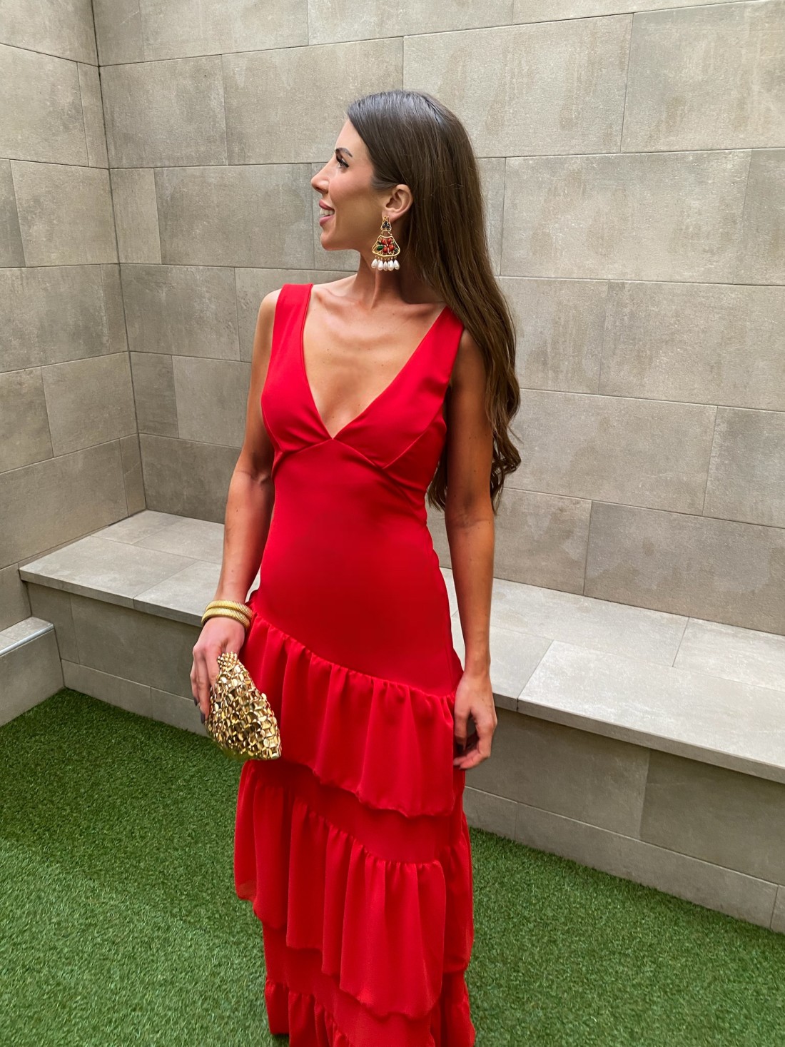 A pesar de su imponente presencia, el Vestido Amina Rojo ofrece una comodidad absoluta, gracias a la ligereza de su tejido que te permitirá disfrutar de la celebración con total libertad. Este color es perfecto para combinar con accesorios en dorado para un look de "alfombra roja" o con sandalias negras para una estética más minimalista y rompedora. Con este vestido, tu presencia será sinónimo de seguridad, estilo y distinción máxima.