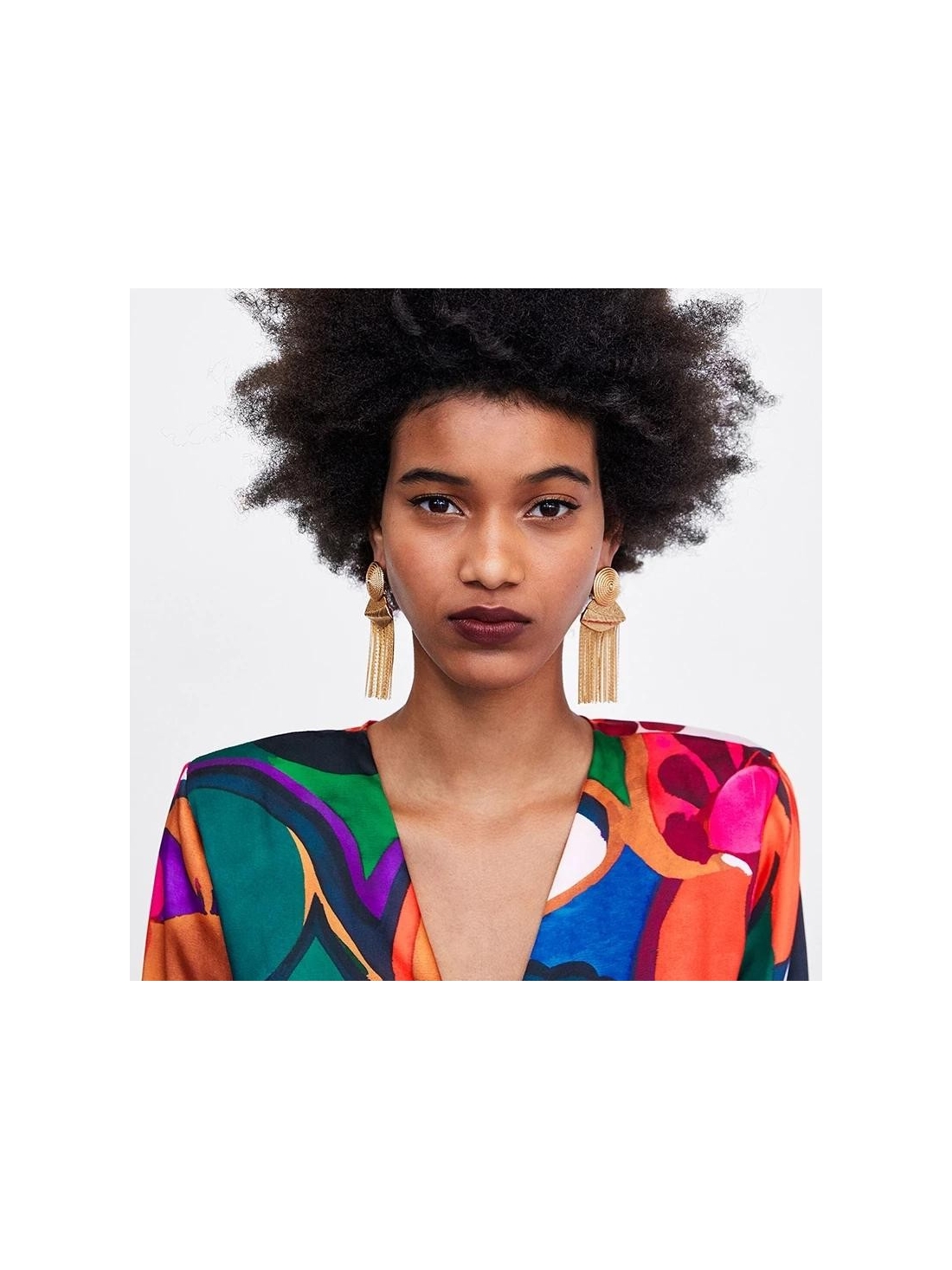 Boucles d'oreilles pendantes disponibles dans les tons or ou argent, divisées en trois pièces pour la distinction et le mouvement