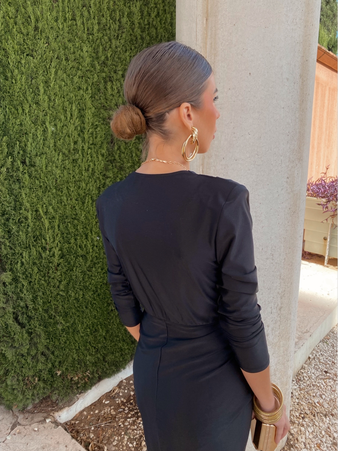 Coliza Long Sleeve Black Dress - Y a-t-il quelque chose de plus élégant qu'une robe noire avec un décolleté plongeant ?