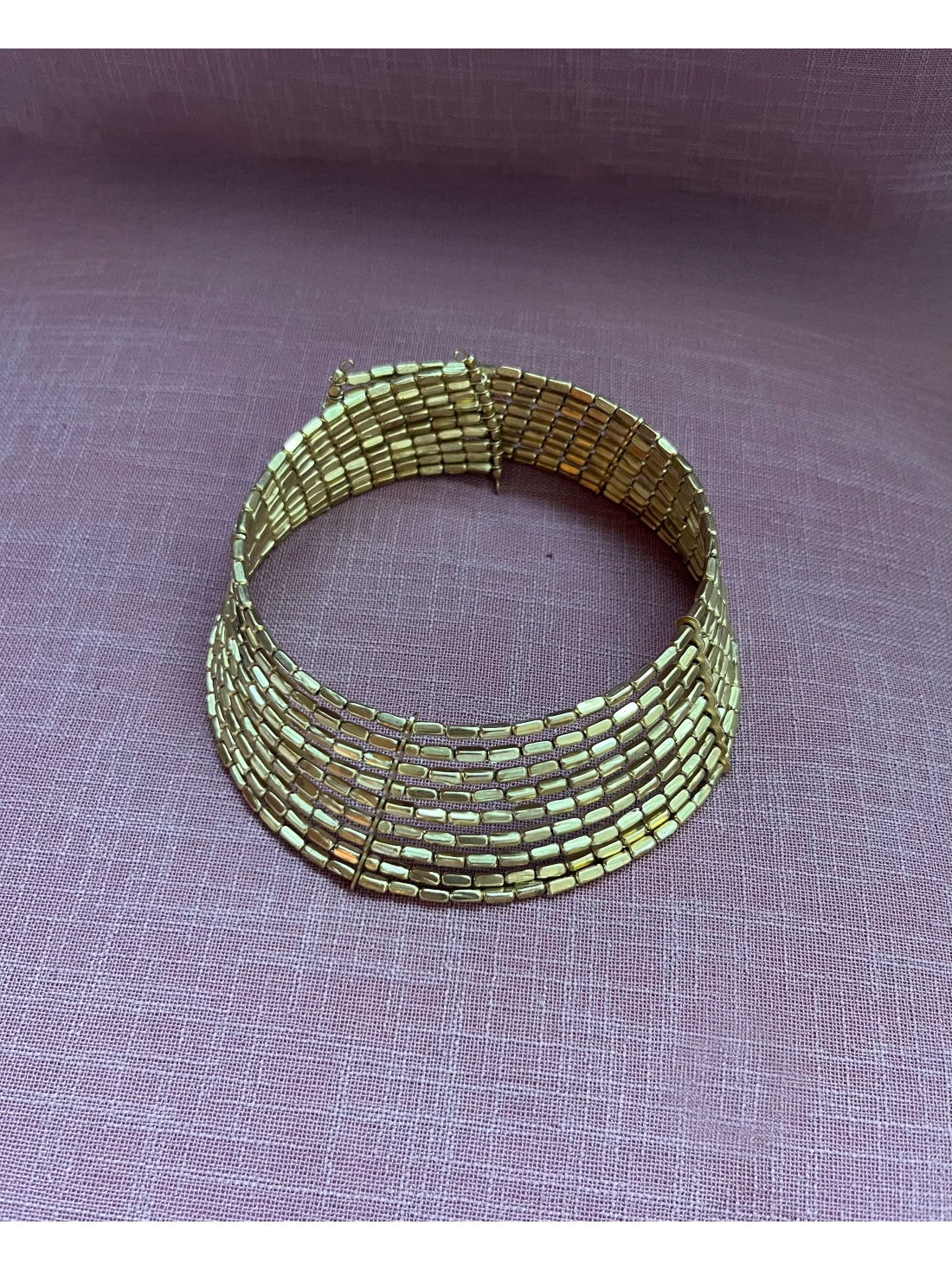 Con un brillo cálido y uniforme, esta gargantilla se posa como una segunda piel dorada, aportando fuerza, elegancia y un magnetismo inexplicable. Ideal para combinar con vestidos de escote limpio y hombros descubiertos, se convierte en el centro absoluto de la composición, sin necesidad de más adornos.