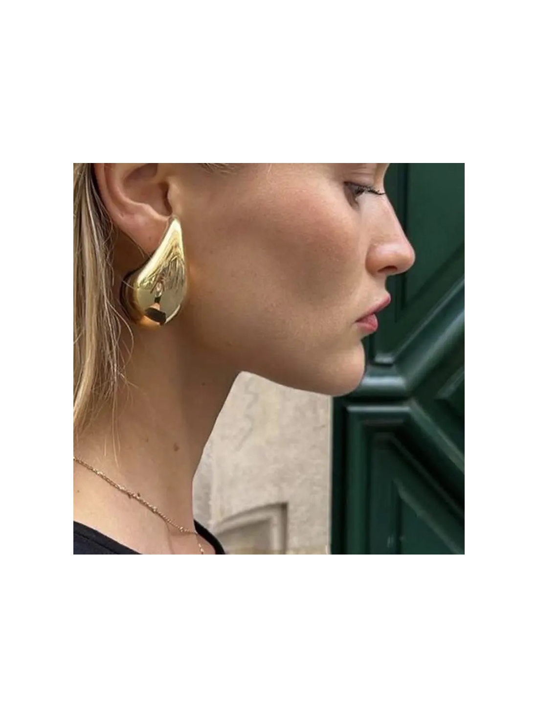 A forma de lágrima destes brincos dourados não só realça a beleza do rosto, como também confere um ar de distinção.