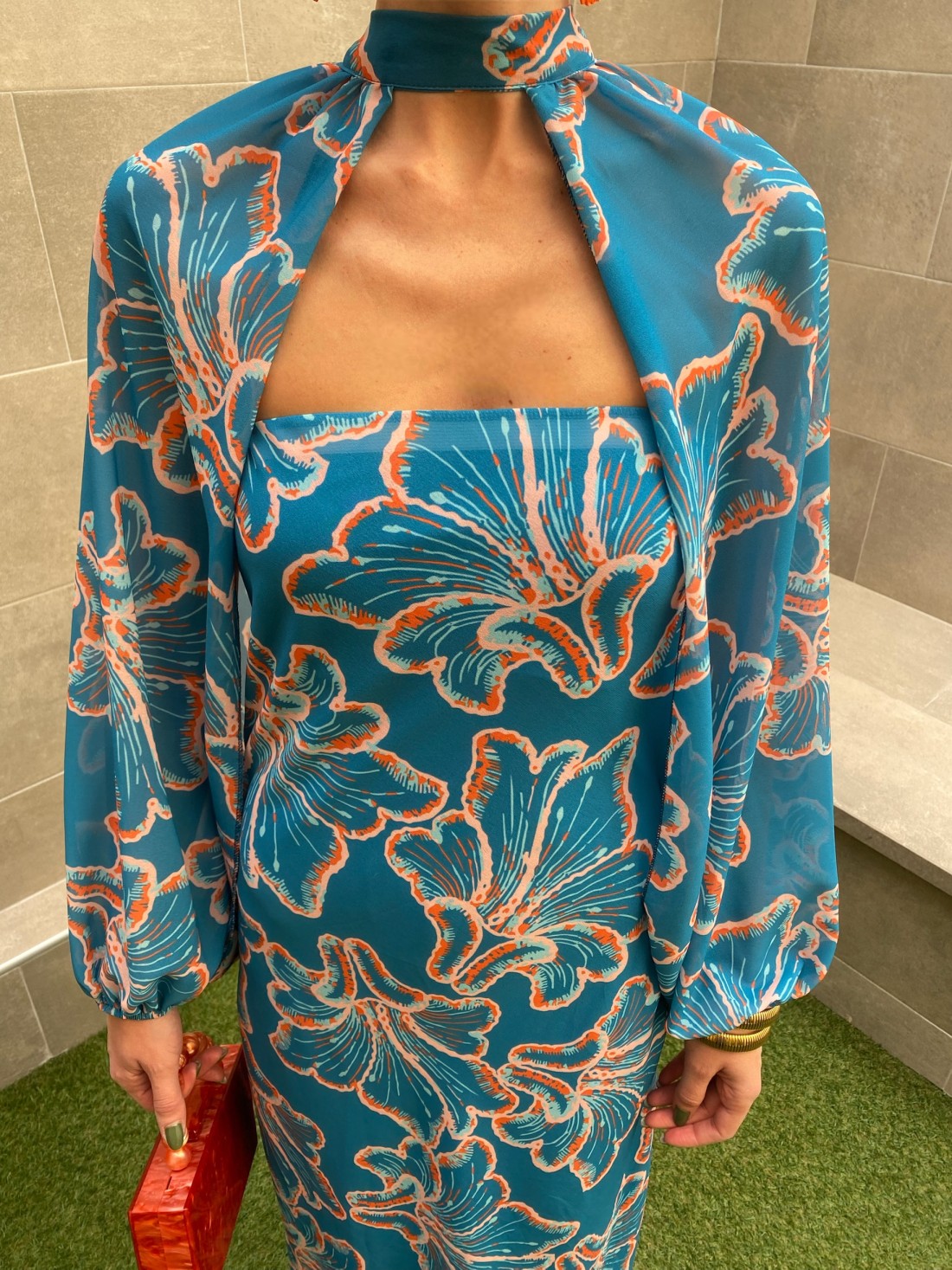 O vestido azul Dabbo é uma peça irresistível, criada para quem busca um estilo fresco, moderno e profundamente elegante. Este vestido cativa com sua vibrante estampa floral artística em tons de azul petróleo e turquesa, oferecendo uma estética luminosa e sofisticada, ideal para casamentos diurnos, eventos noturnos e celebrações especiais .
