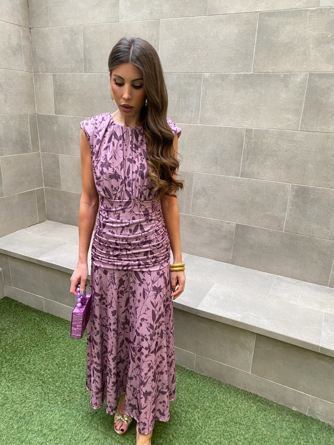 O vestido Lina foi concebido para esculpir a silhueta através de uma sofisticada combinação de pregas e franzidos, ideal para um look de convidada na primavera.