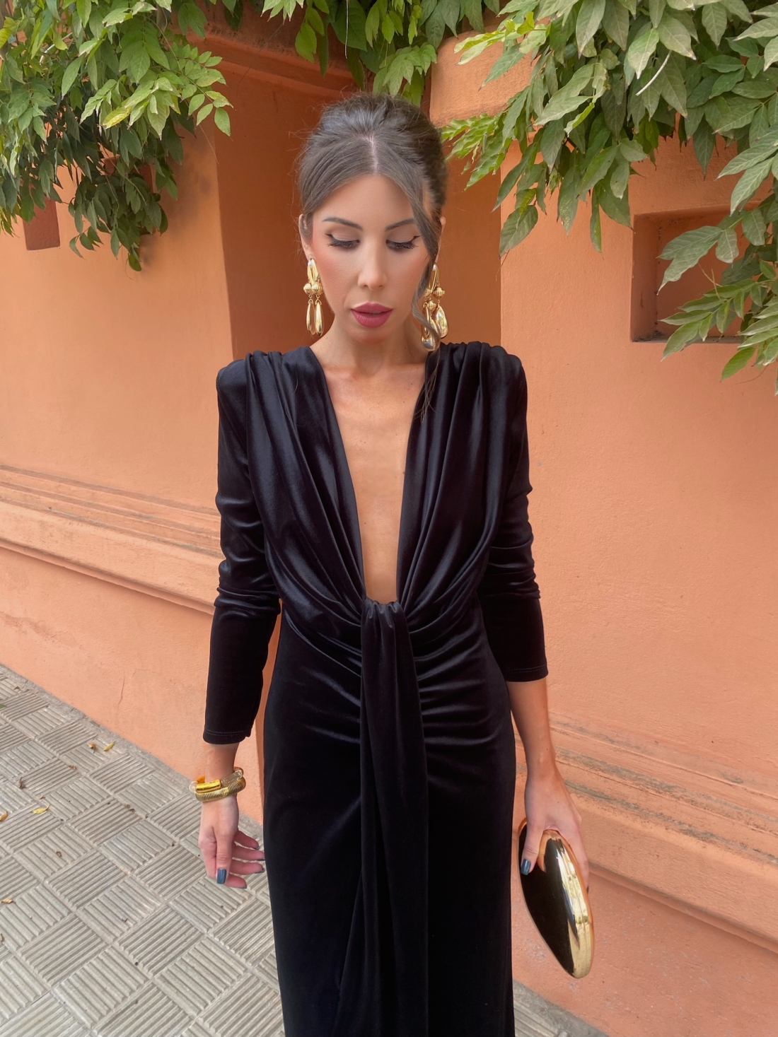 O vestido de veludo preto Coliza é sinónimo de elegância intemporal e sofisticação absoluta. Confeccionado em veludo macio e elástico, este modelo envolve a figura com um drapeado impecável e um brilho subtil que acrescenta profundidade e magnetismo ao visual.